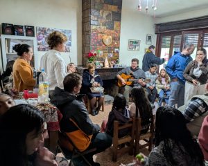 La casa della Fundacion Stabat rimane un luogo di accoglienza vivo dove continuamente molteplici persone vengono a condividere un pasto e un momento fraterno.