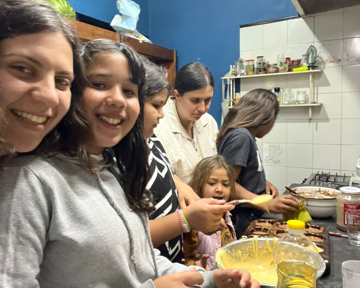 La casa della Fundacion Stabat rimane un luogo di accoglienza vivo dove continuamente molteplici persone vengono a condividere un pasto e un momento fraterno.